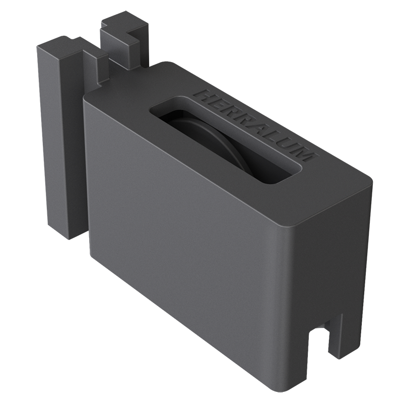 Carretilla tipo europea con rodaja de nylon para ventana y puerta corrediza. Línea de 2” Cuprum, zoclo alto y perfil 7825. Peso Máximo 25Kg