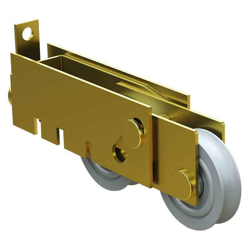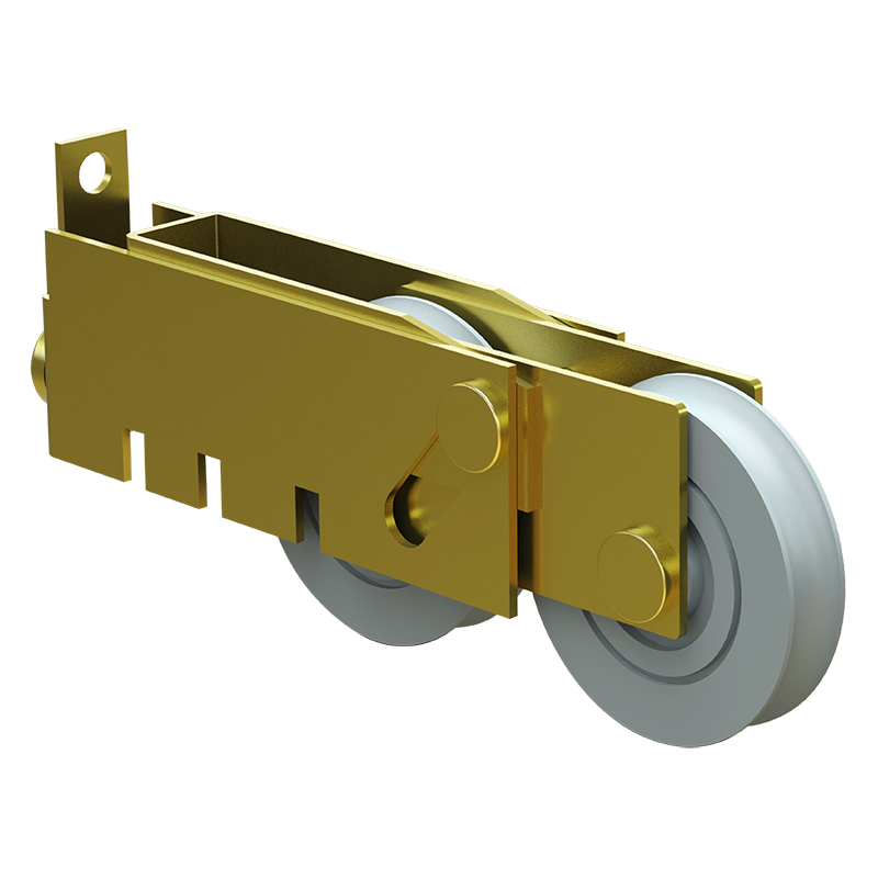 Carretilla tandem doble balero de nylon importado de 1 1/4”. Para línea Cuprum corrediza de 3”. Peso Máximo 50Kg – 25Kg por balero