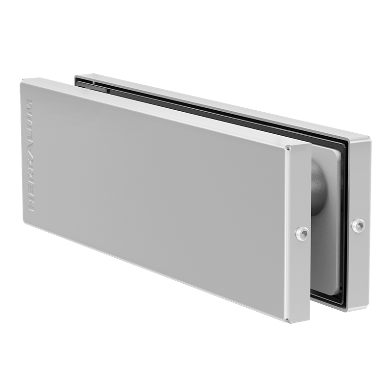 Herraje superior línea Tapalpa para puerta abatible de vidrio templado, con entrada para bisagra aérea RYOBI modelo 1002 y 1006.