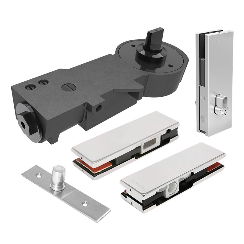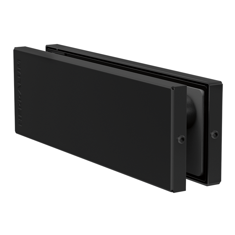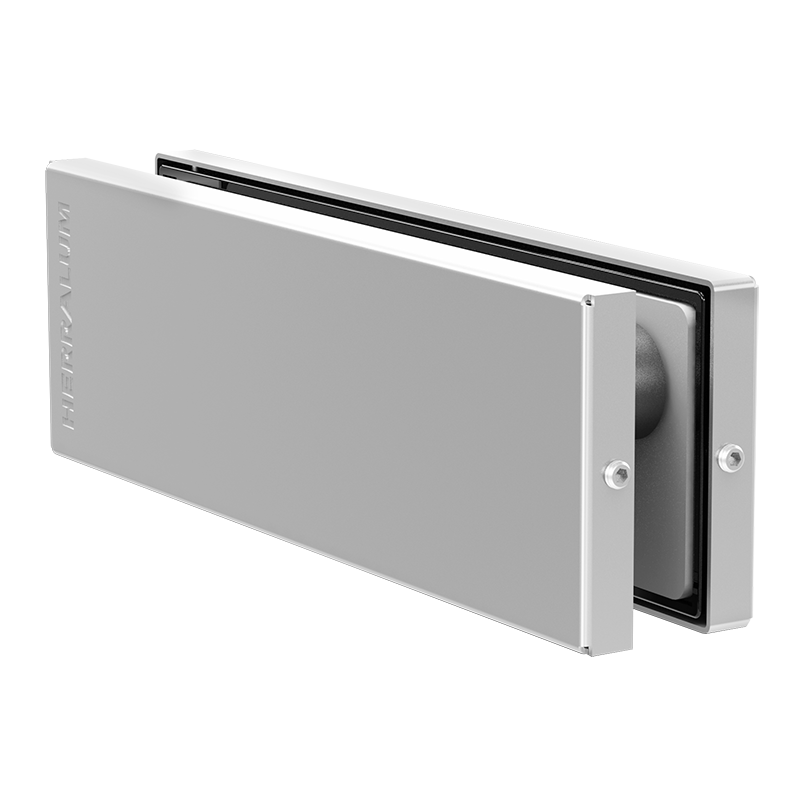 Herraje superior línea Tapalpa para puerta abatible de vidrio templado, con entrada para pivote superior 1010. Para cristal de 9 a 12mm de espesor.