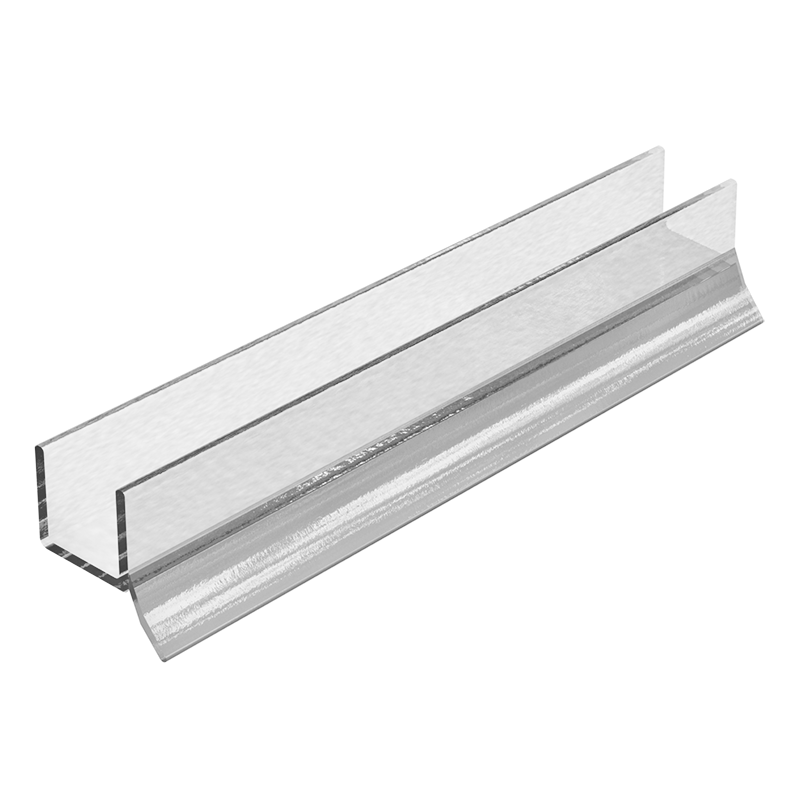 Perfil de policarbonato Xochimilco tipo “H” con aleta rígida lateral que sirve como jamba de sellado o tope. Tiene un largo de 2.50m y es para cristal con 9mm de espesor. *Para instalación lateral.