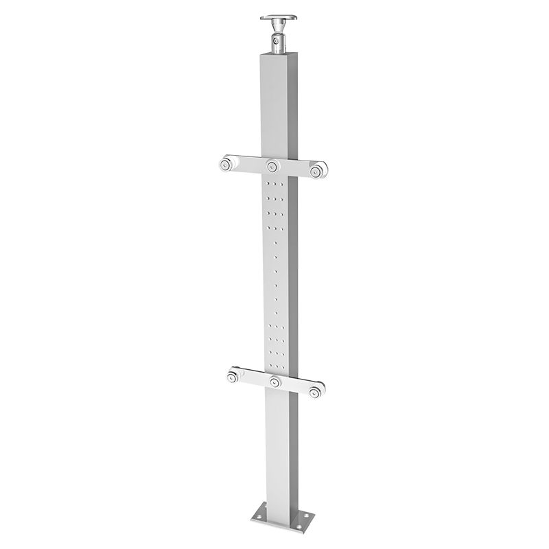 Poste para barandal Vuvuzela con conectores a vidrio sencillo, para cristal templado. Altura de 1m. Incluye herraje conector para tubo pasamanos. *Disponible únicamente en medidas de línea. **Para zonas costeras ó de alta salinidad se recomienda acero inoxidable 316, se puede cotizar sobre pedido. Espesor Para cristal de 8 a 10mm de espesor