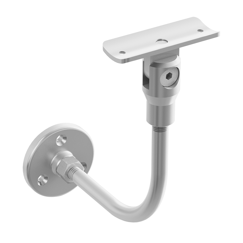 Soporte ajustable de 2” muro a tubo para pasamanos. Instalar cada pieza a 1m de separación máximo. Ajustable en altura e inclinación. *Fijar a muro con taquete expansivo. Peso Máximo 50kg por pieza