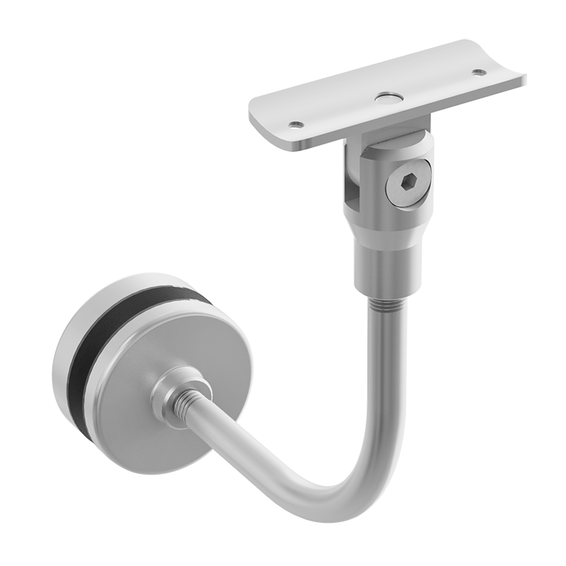 Soporte ajustable de 2” vidrio a tubo para pasamanos. Instalar cada pieza a 1m de separación máximo. Ajustable en altura e inclinación. *El soporte de peso máximo corresponde al gancho, se debe tomar en cuenta la resistencia del cristal ya que puede variar dependiendo del grosor. Peso Máximo 50kg por pieza